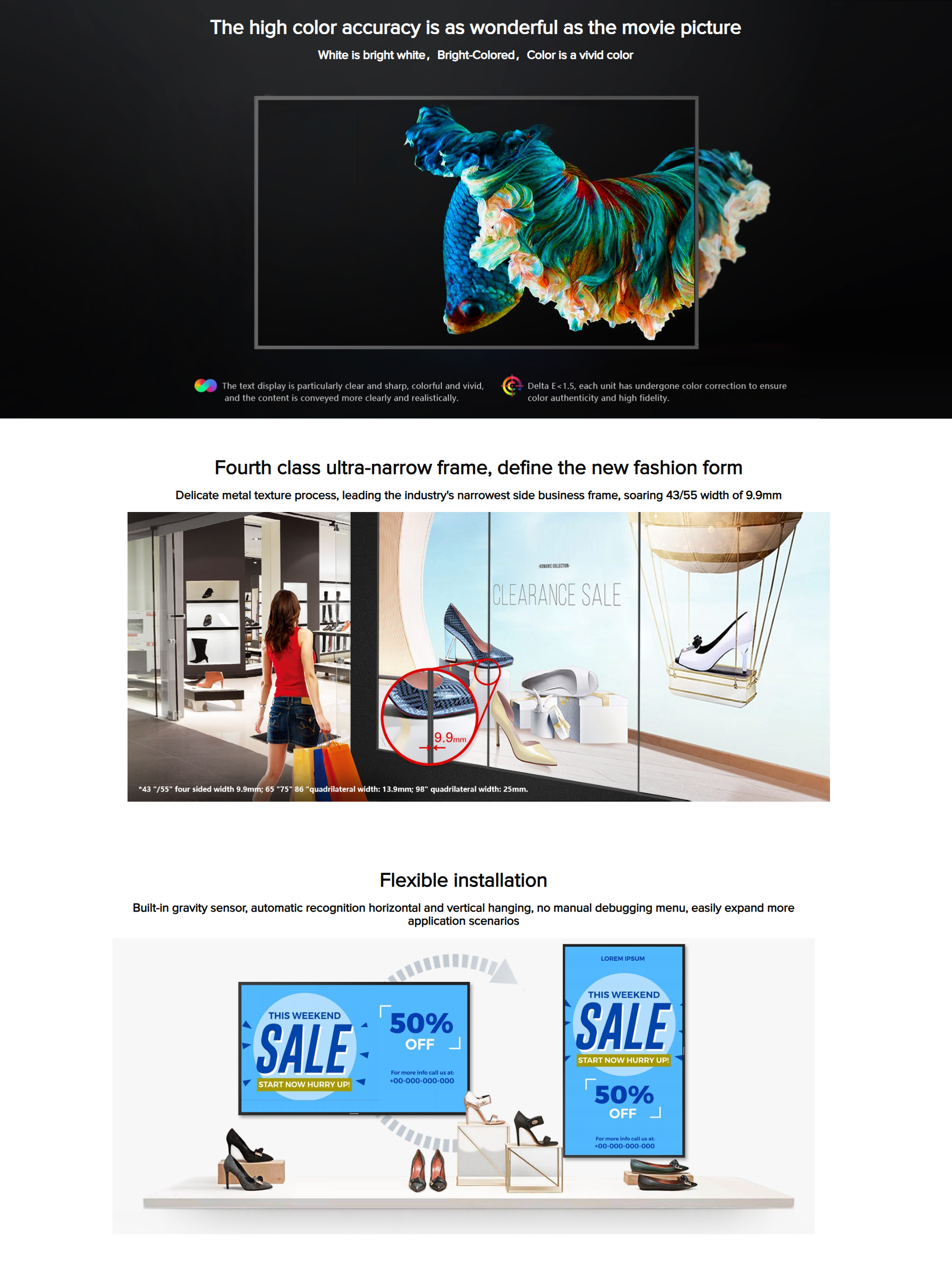 - Alto brillo 500nit, alta saturación