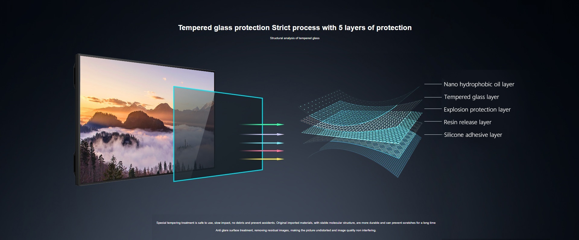 - Protección de vidrio templado. Proceso estricto con 5 capas de protección
