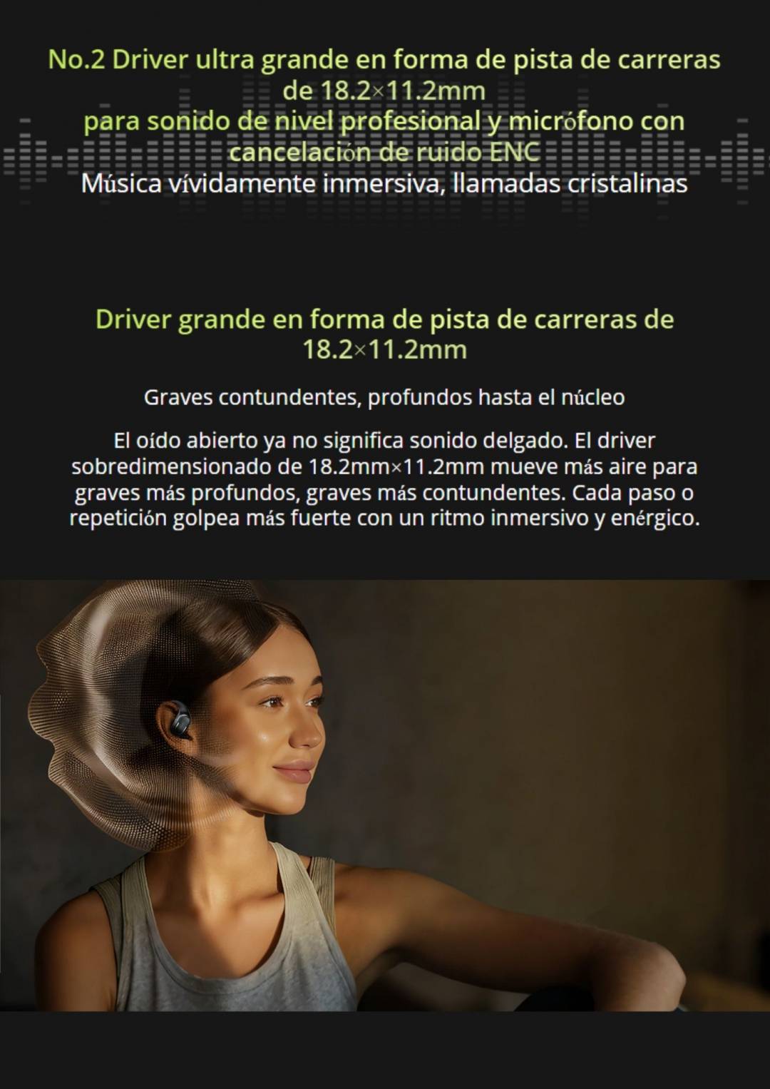 Controlador de pista de carreras grande de 18,2 × 11,2 mm para sonido de nivel profesional y micrófono con cancelación de ruido ENC.
