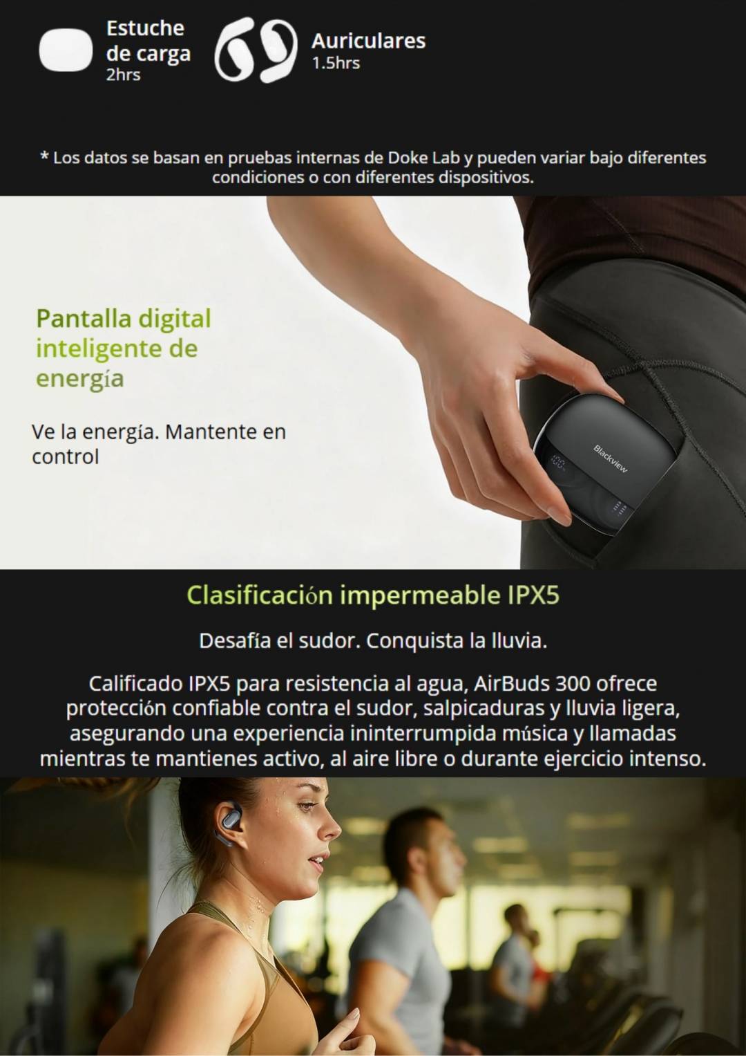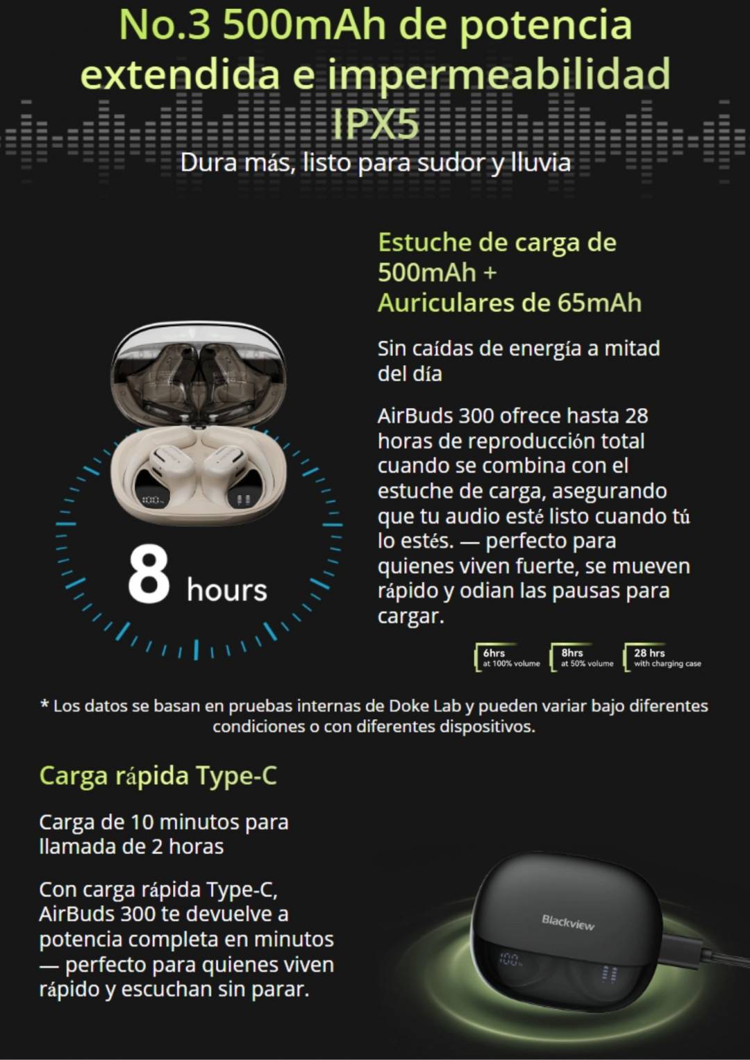 Estuche de carga: 500 mAh