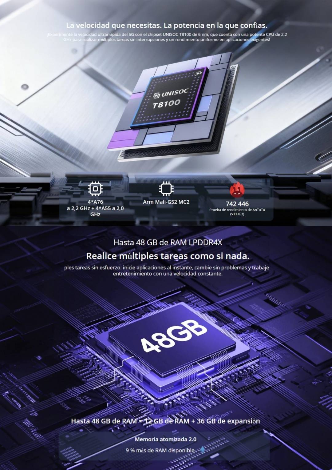 CPU: Octa-core 5G 6nm UNISOC T8100