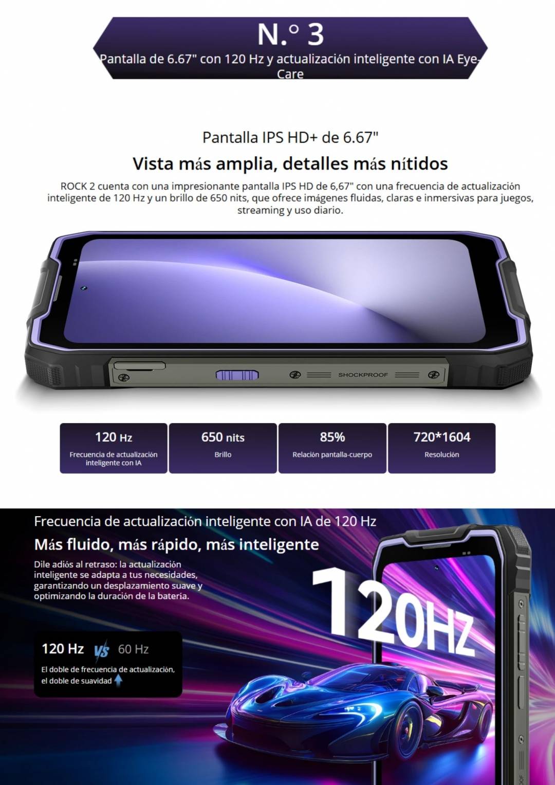 Pantalla: IPS HD+ de 6.67 pulgadas, resolución 720 * 1604,