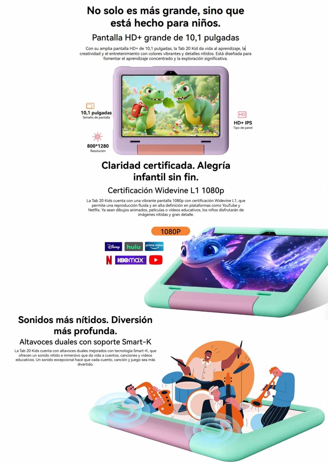 Mostrar: Pantalla IPS HD+ de 10,1 pulgadas, relación pantalla-cuerpo del 79%, frecuencia de actualización inteligente de 60 Hz.