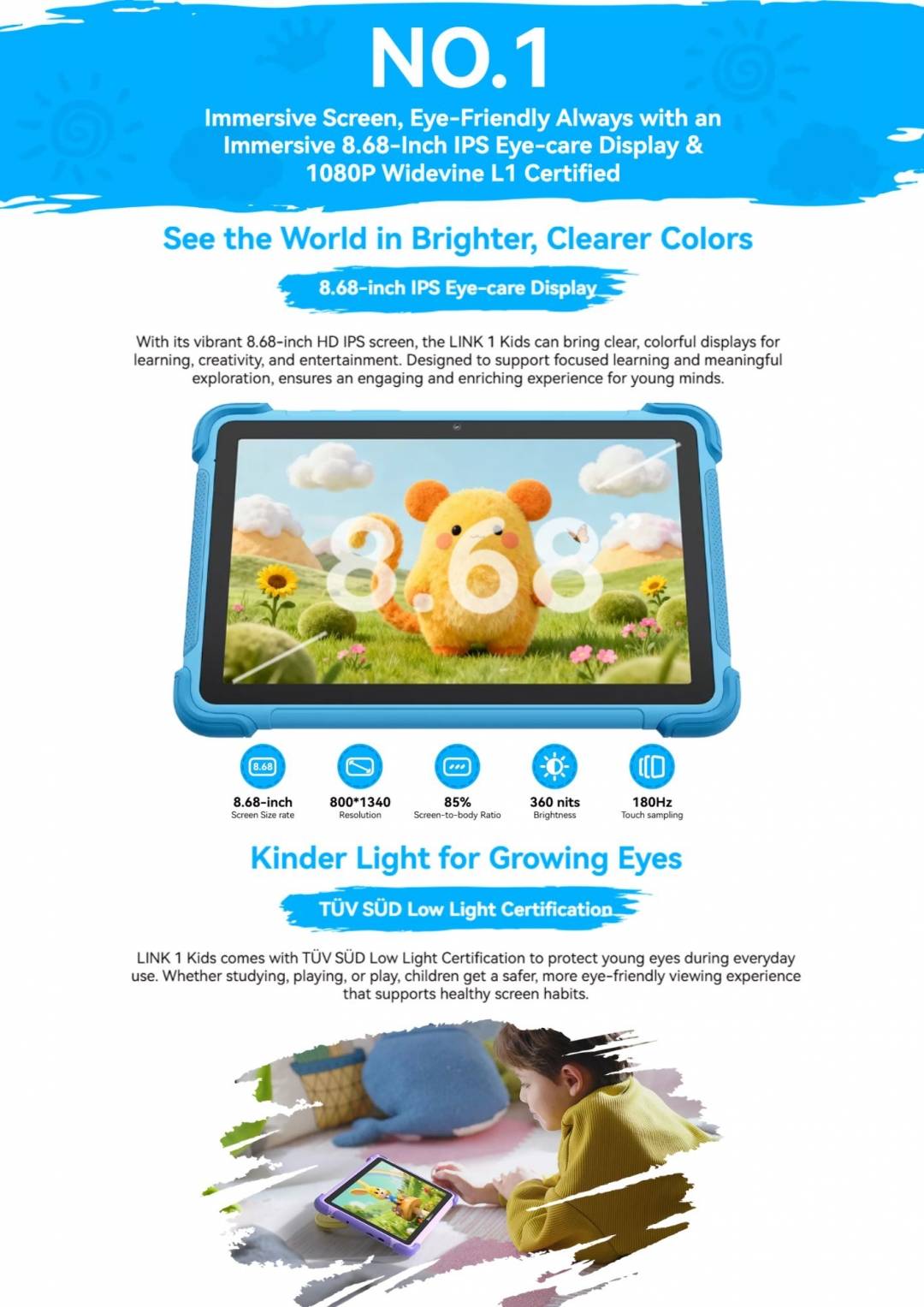 Pamtalla: 8,68" HD IPS, resolución de 800*1340, relación pantalla-cuerpo del 85 %, frecuencia de muestreo táctil de 180 Hz